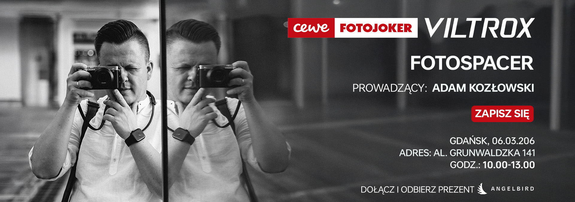Dołącz do nas i podpatrz techniki pracy, jakie Adam stosuje w swojej fotograficznej codzienności. To świetna okazja, aby rozwijać swoje umiejętności, wymienić się doświadczeniami i spotkać pasjonatów fotografii. Widzimy się 4 marca o godz.: 10:00 w salonie CEWE Fotojoker (Galeria Bałtycka, poziom -1).